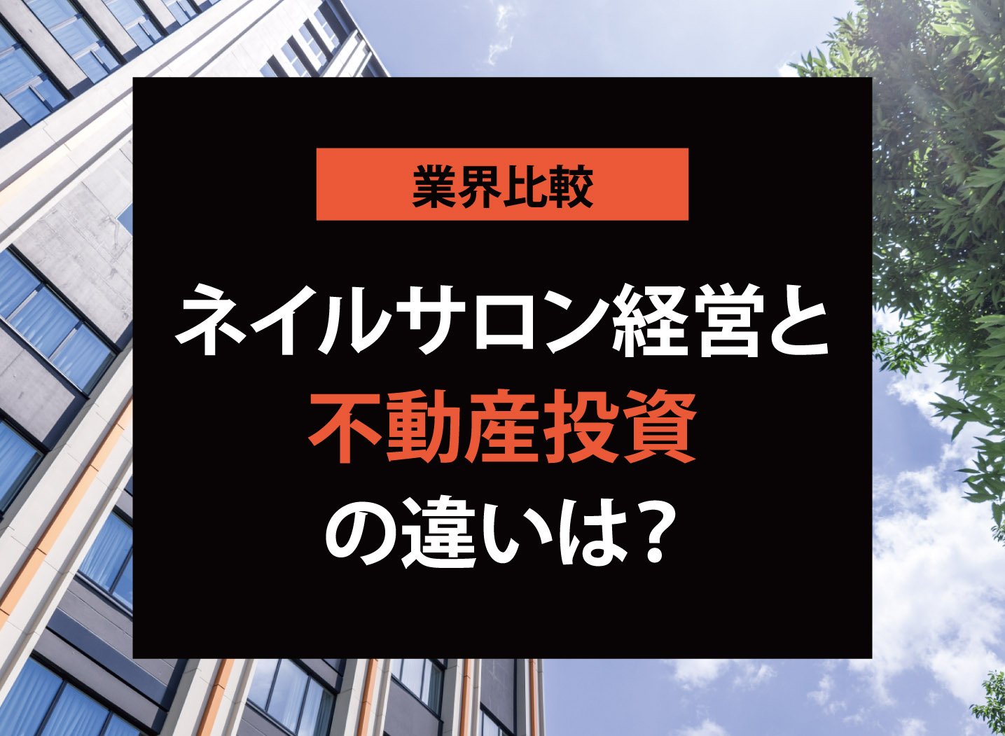 ネイルサロン開業をビジネスモデルとして考えた時、仕組みがよく似ていて比較対象となりやすいのが「不動産投資」です。本記事では、ネイルサロン開業と不動産投資との違いについて、リスク・利回りや必要な資金といった観点から解説します。