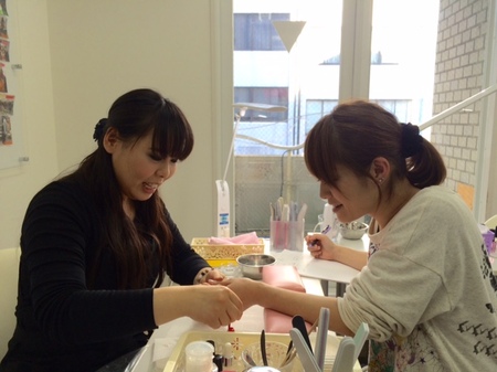 このアートを作った生徒さんお二人とも、ネイリスト検定2級に合格され、ジェルアートのレッスンに進みました。
